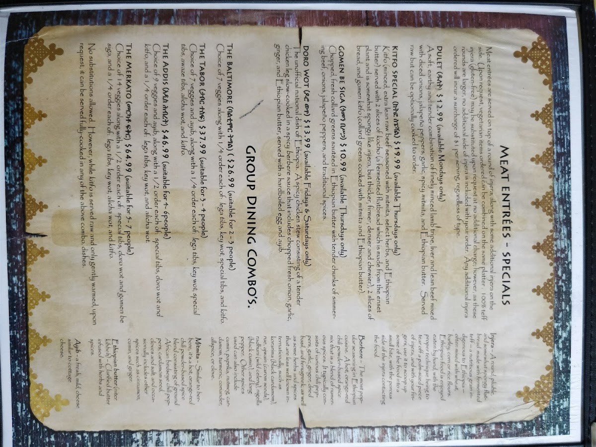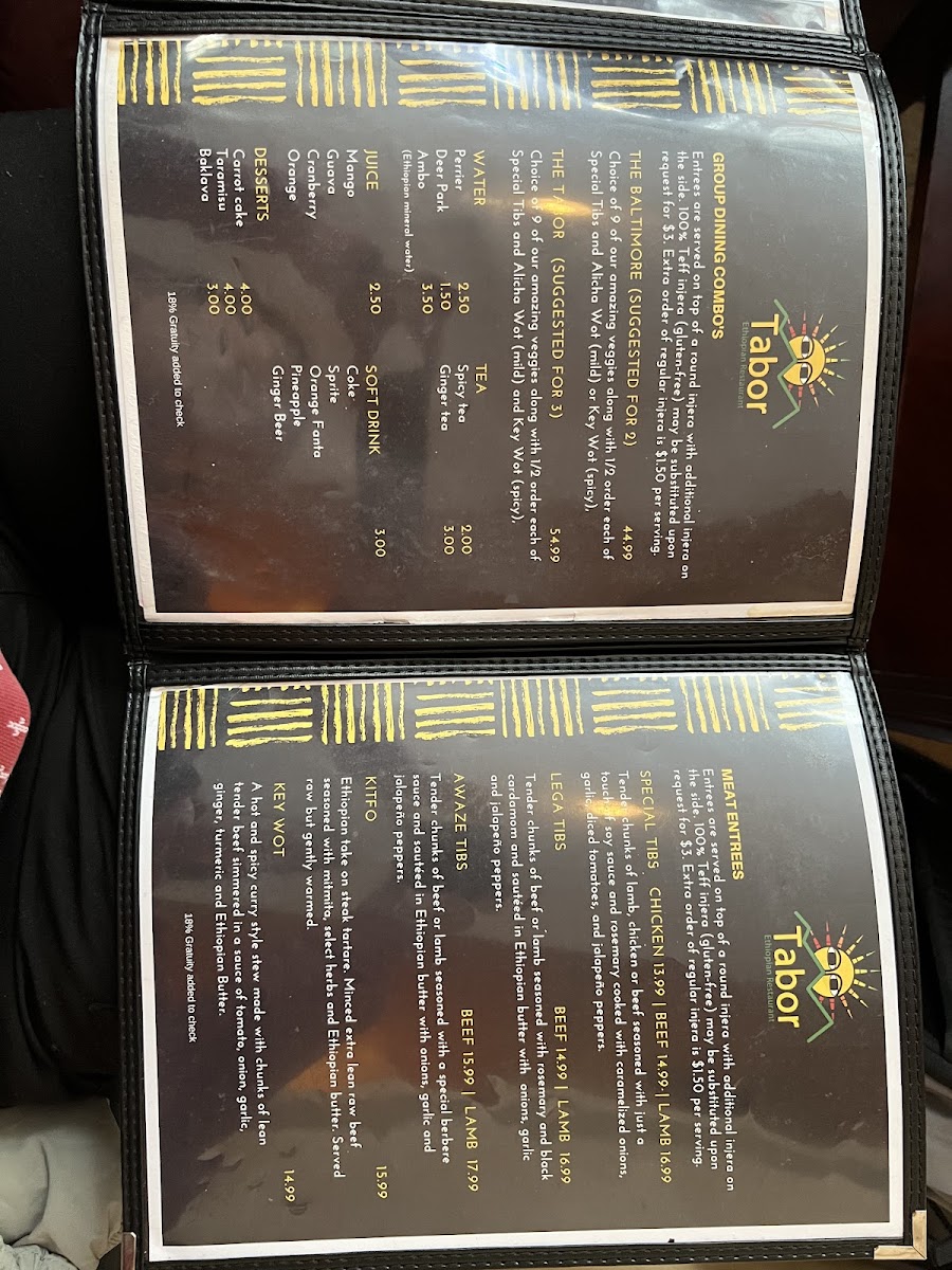 Tabor Ethiopian Restaurant Menu